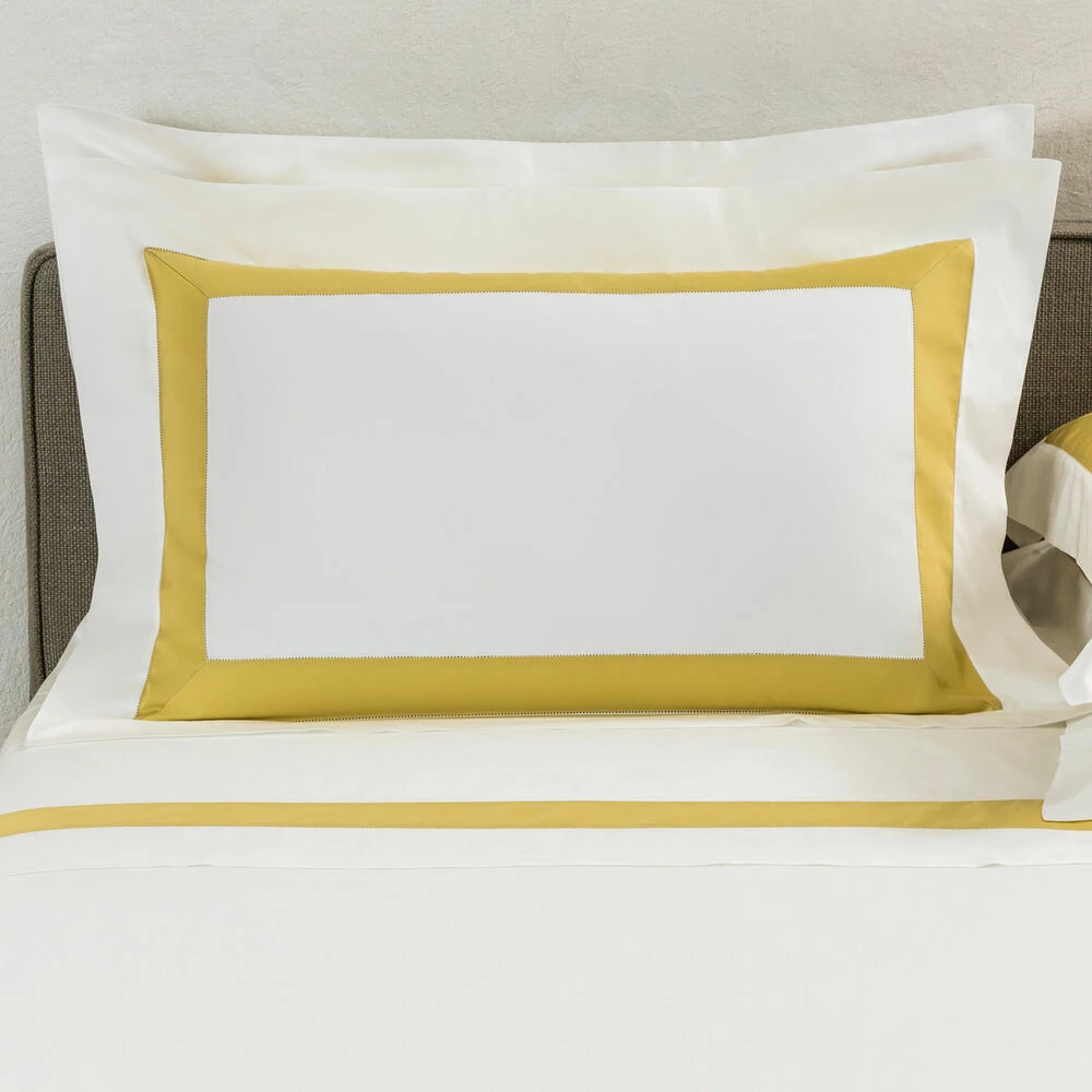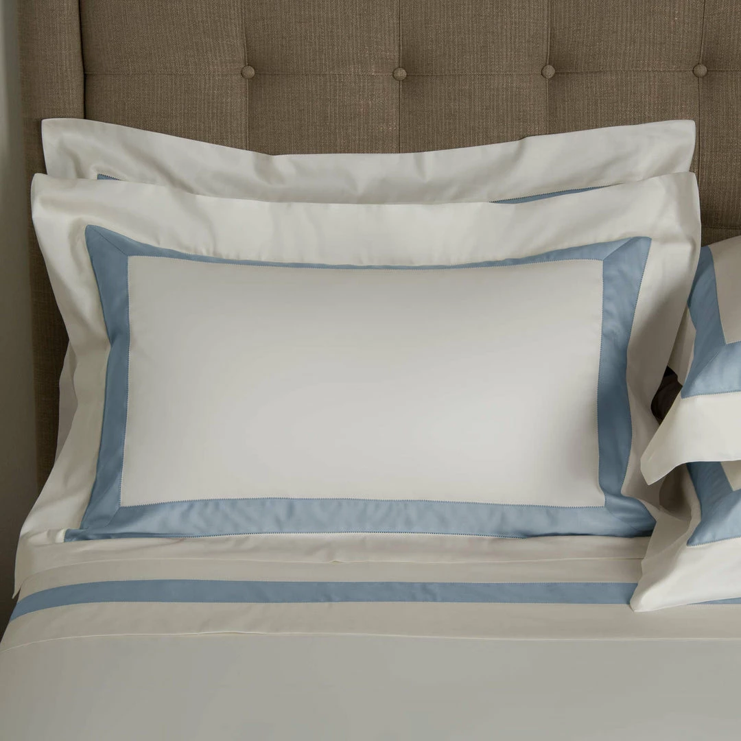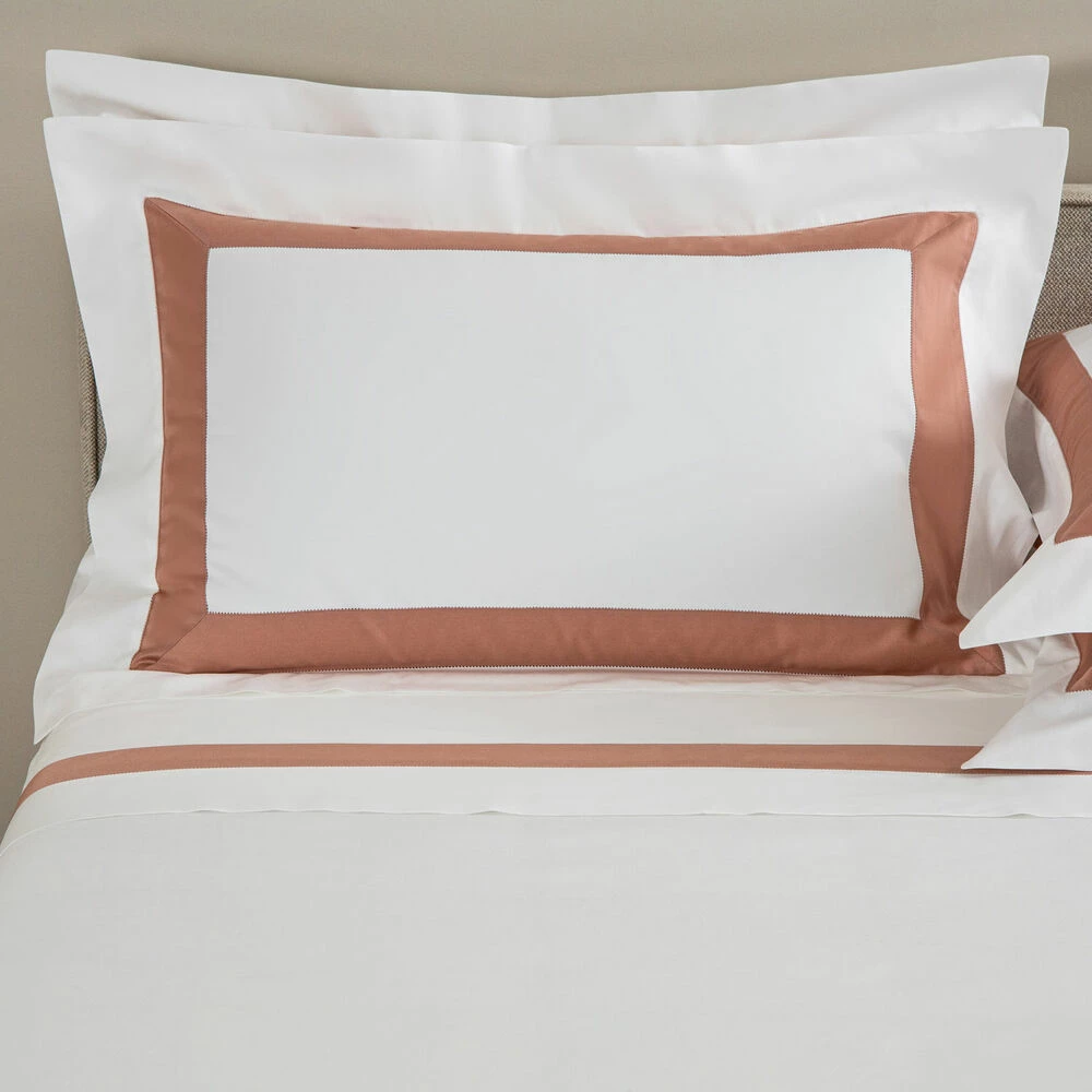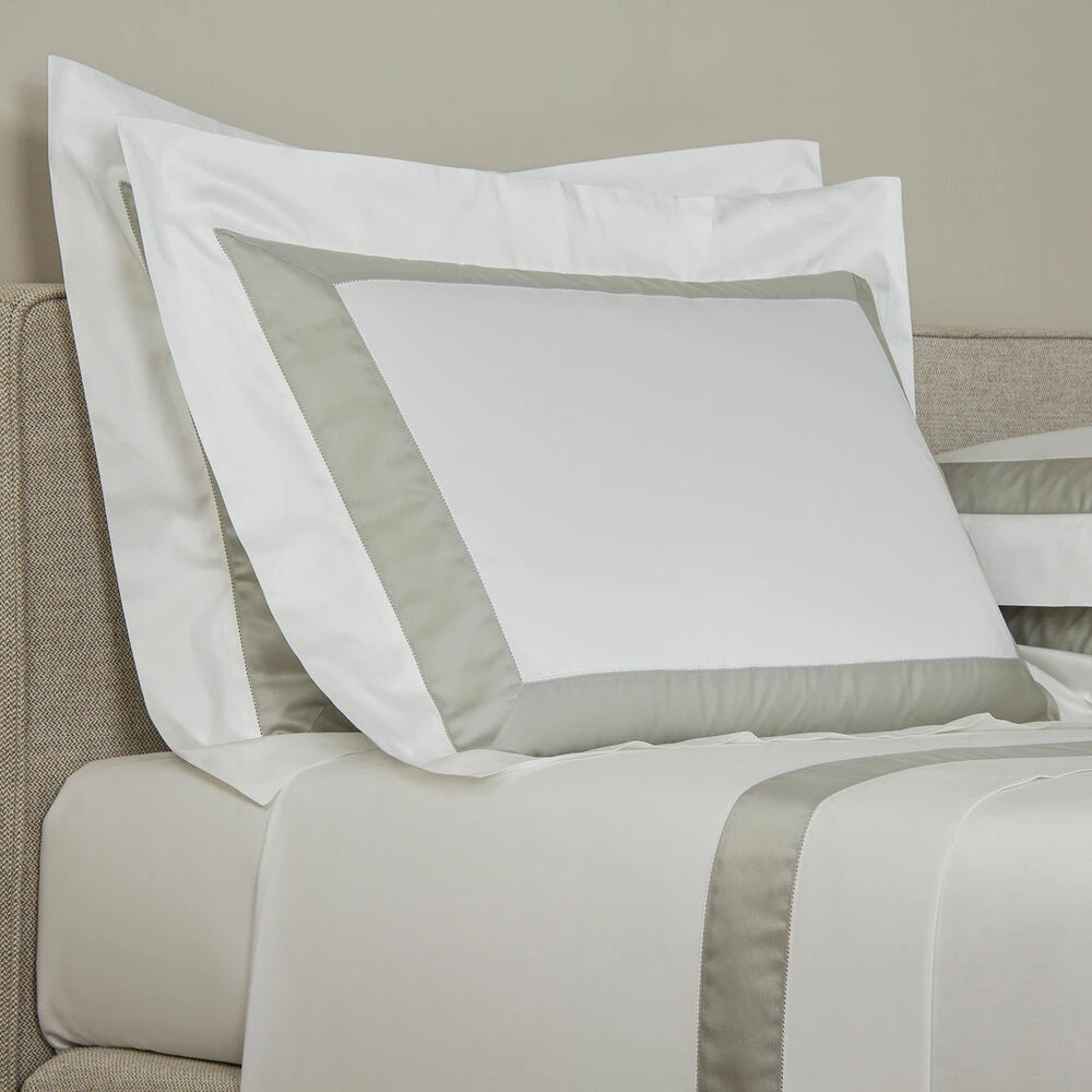 Sink into our plush Bicolore Sham for a luxurious finish to every day. Composed of smooth, soft and lustrous long-staple cotton sateen, this elegant sham is a beautiful accent to any classic bedroom. The contrasting border provides a bold, yet minimal accent to your bedroom. Finished with Frette’s signature open hemstitch, this sham will soon become your favourite accent piece. 100% cotton. Made in Italy. Lay your head on our silky Bicolore Sham for a luxurious experience every night. Composed of smooth, soft cotton sateen, the Bicolore Sham will soon become a favourite.