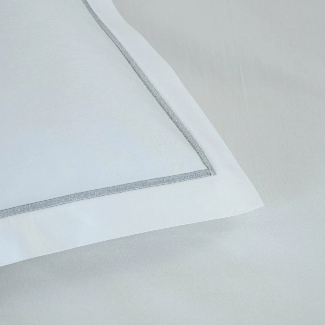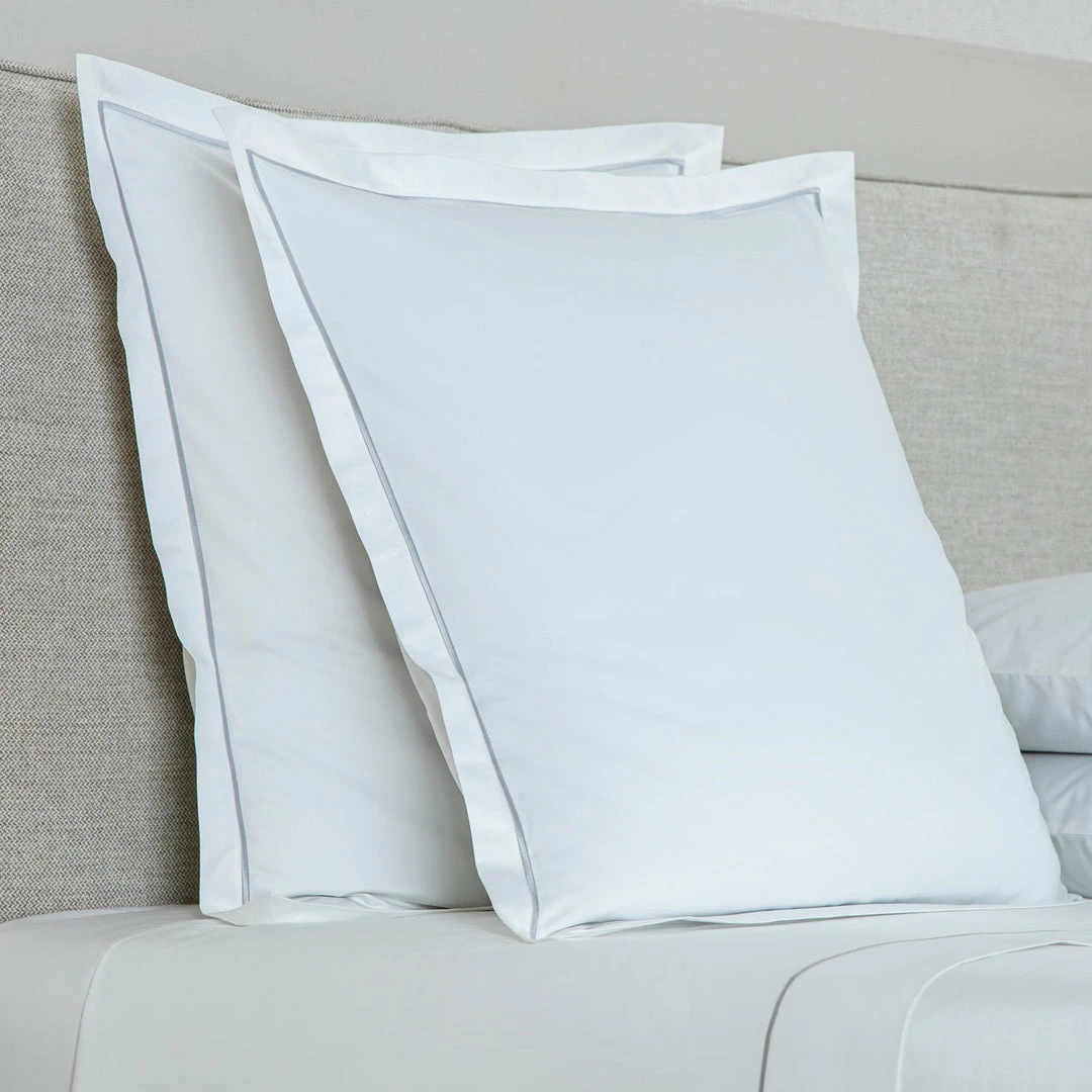 A euro sham in smooth cotton sateen with a classic single embroidered border. 100% cotton. Made in Italy. The Camelia Euro Sham crafted from smooth cotton sateen featured with a classic single embroidered border.