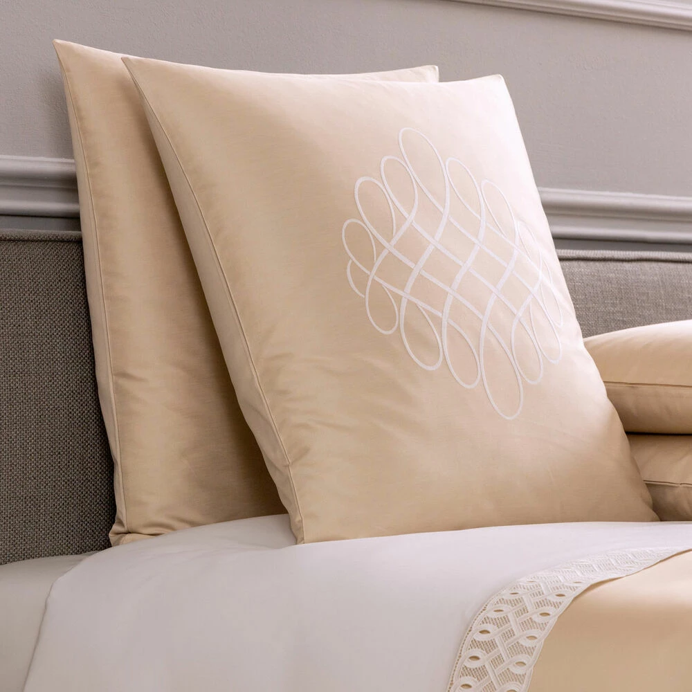 Featuring a sinuous weaving medallion pattern in yarn-dyed jacquard cotton sateen and simple hem finishing, the Monogram Euro Sham is a stylish addition to any bedroom ensemble. Backed with yarn-dyed cotton sateen. 100% cotton. Made in Italy. Sink into the exquisitely sinuous medallion of the Monogram Euro Sham in carefully crafted in yarn-dyed cotton sateen jacquard.