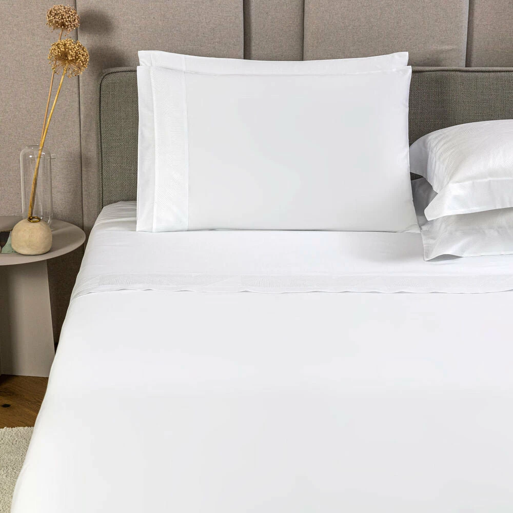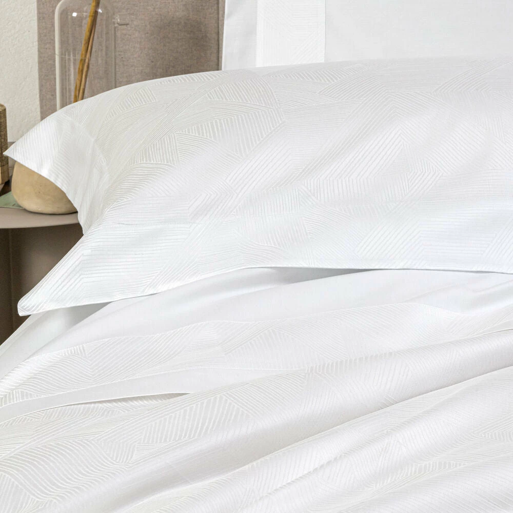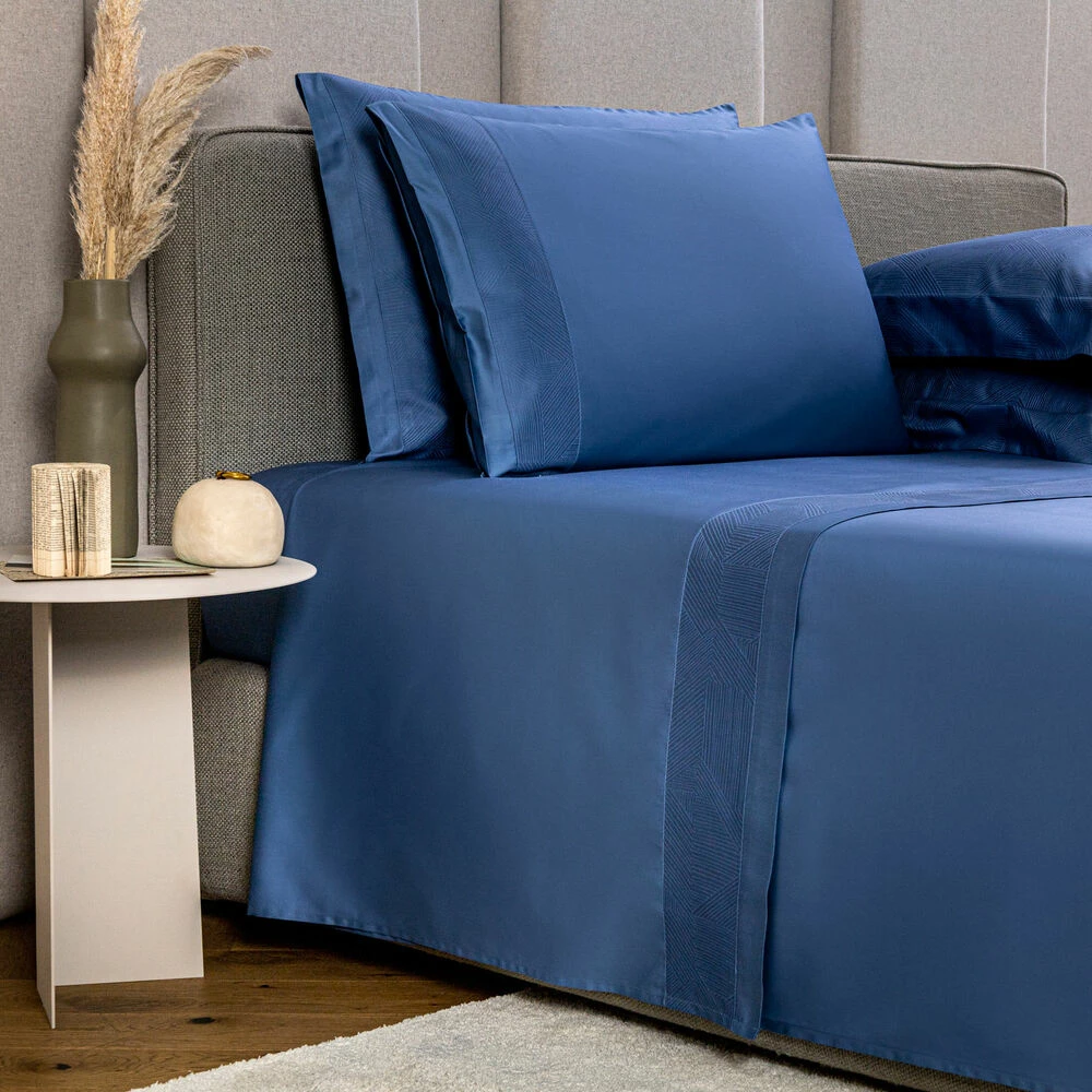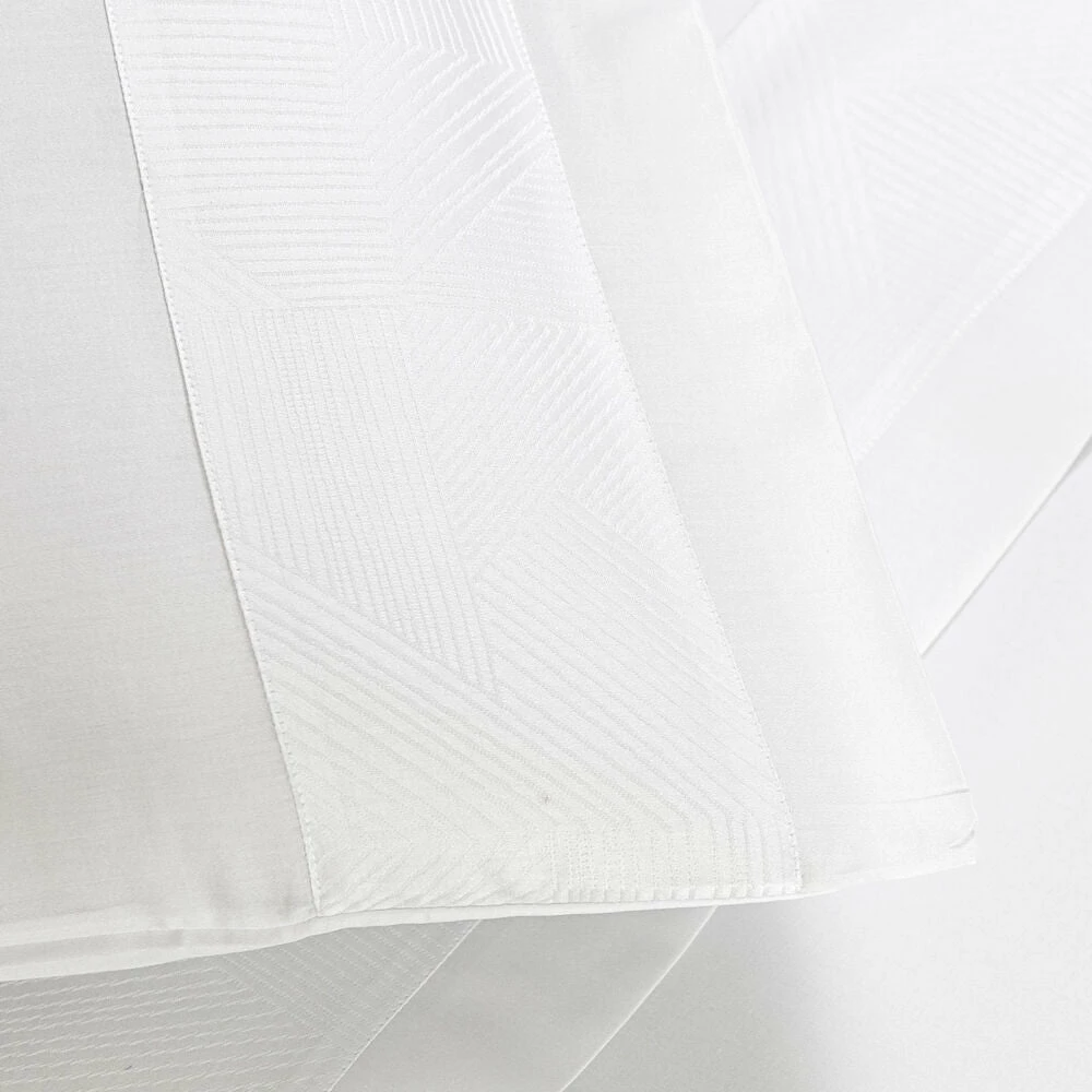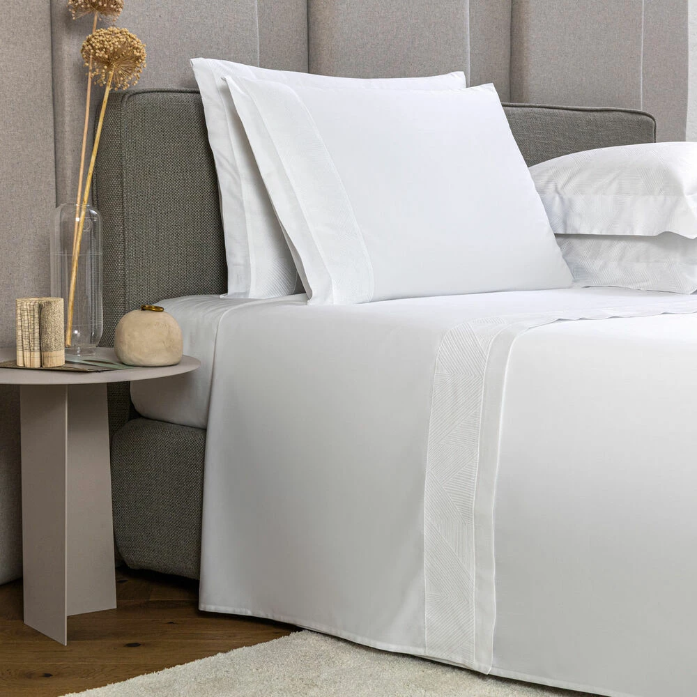 The Now Sheet Set from Frette is crafted in cotton sateen jacquard with a linear pattern and a subtle sheen. With a subtle geometric jacquard border on the top sheet, the Now Sheet Set is a sophisticated way to add a feeling of calm to the bedroom. Includes a solid fitted sheet and set of pillowcases. 100% cotton. Made in Italy.