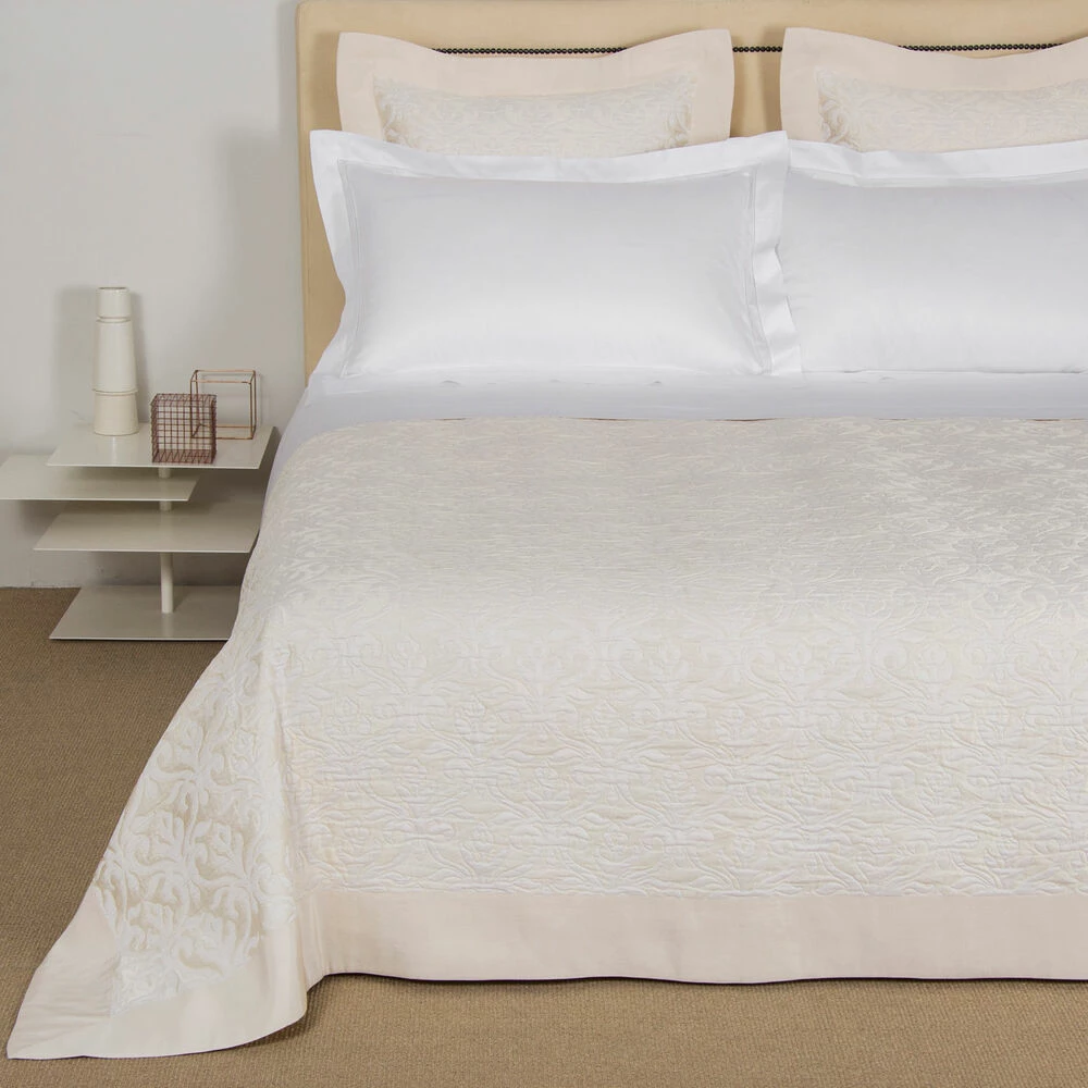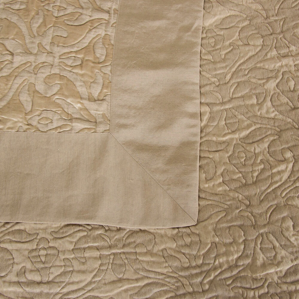 Fashioned in a soft and sumptuous mixture of linen and silk, the Platium Bedcover showcases a scrolling jacquard pattern of intertwining leaves. Linen and silk. Made in Italy. Fashioned in a soft and sumptuous mixture of linen and silk, this bedspread showcases a scrolling jacquard pattern of intertwining leaves.