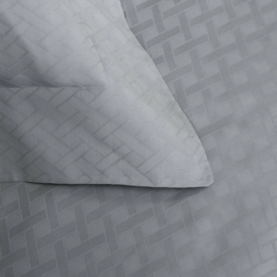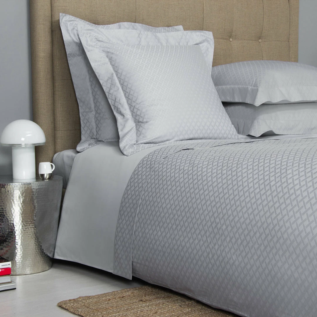 A duvet set featuring a duvet cover and two euro shams embellished with an allover crosshatch jacquard design in cotton sateen. 100% cotton. Made in Italy. A duvet set featuring a duvet cover and two euro shams embellished with an allover crosshatch jacquard design in cotton sateen.