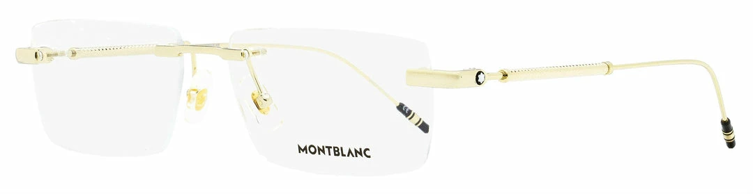 The MontBlanc MB0112 optical frames feature a rectangular lens shape and rimless design for men. The diamond cylinder temples with geometrical patterns are inspired by the brand’s iconic writing instruments and characterized by the 3 ring detail and snow cap emblem. Montblanc optical frames are sophisticated and epitomize the precision crafted quality standards that the brand is world famous for. Please note these eyeglasses are provided with Demo Lenses in order to demonstrate the final appearance of your frames. Please visit your local Optometrist or Optician to replace with optical quality lenses.